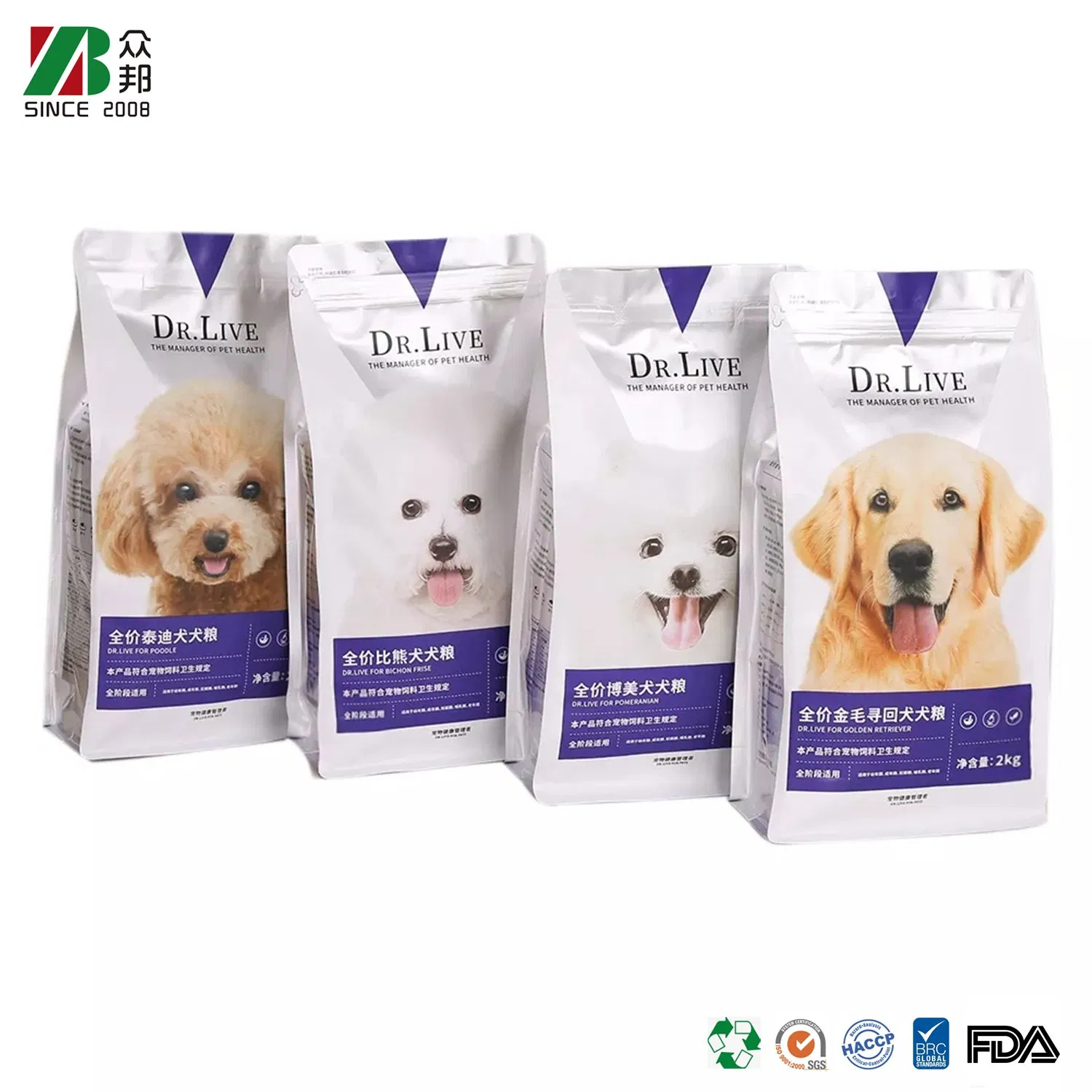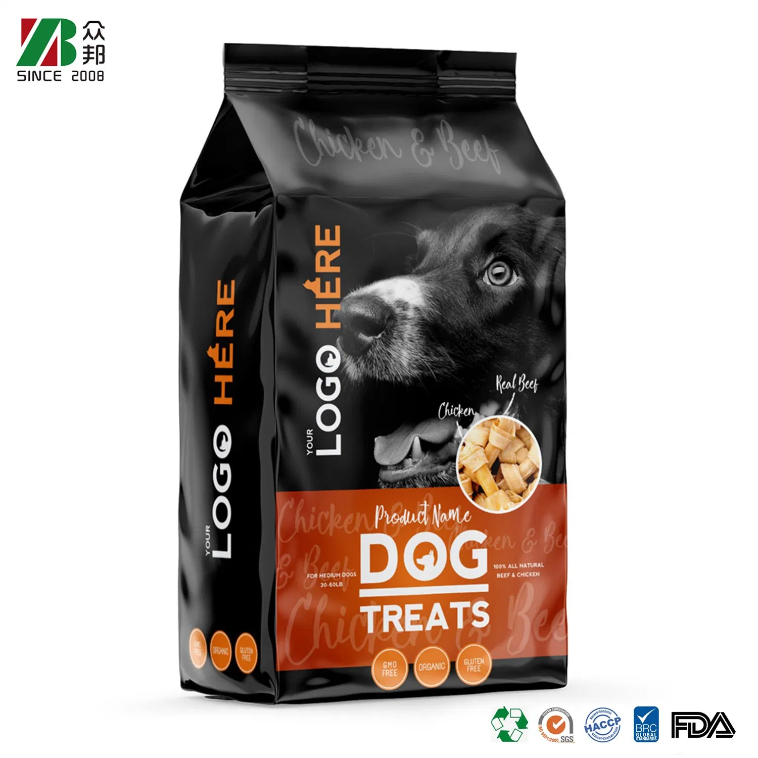• Customize ziplock stand-up pouch for pet food.