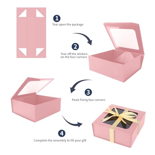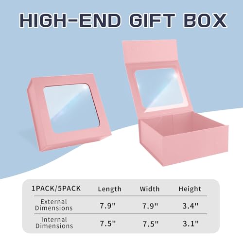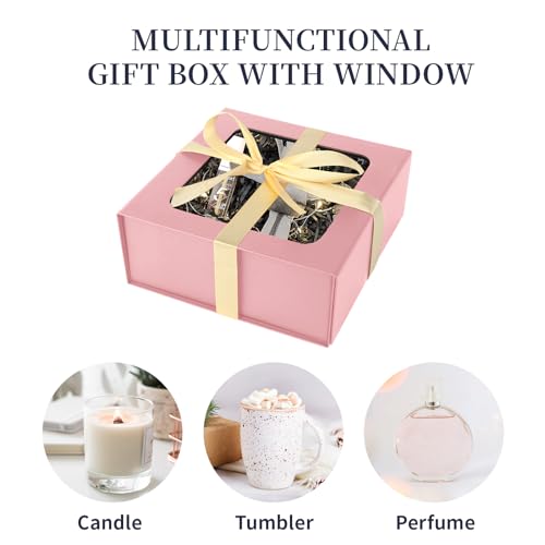 Pink Gift Box with Window – Luxury Bridesmaid Gift Box for Birthday Present Packaging